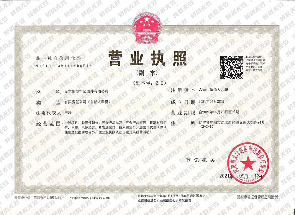 辽宁闹得牢紧固件有限公司位于东北老工业基地中心城市-沈阳,前身为成立于2002年的鞍山闹得牢贸易有限公司。辽宁闹得牢紧固件有限公司注册资金500万元。经营范围为紧固件、五金工具、机电产品的经销及技术进出口。是一家代理进口紧固件及机电产品的专业化公司。公司拥有闹得牢和朗富扣两个商标。
